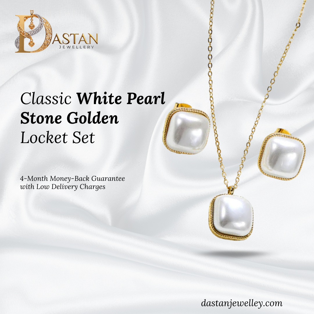 Made with stainless steel, the White Pearl Stone Golden Locket Set is a smart choice for Pakistan’s busy routines and changing weather, offering a neat, polished look that works across seasons. It pairs beautifully with eastern wear, abayas, and even western outfits—perfect for Eid gatherings, engagement events, nikkah dinners, and family functions.